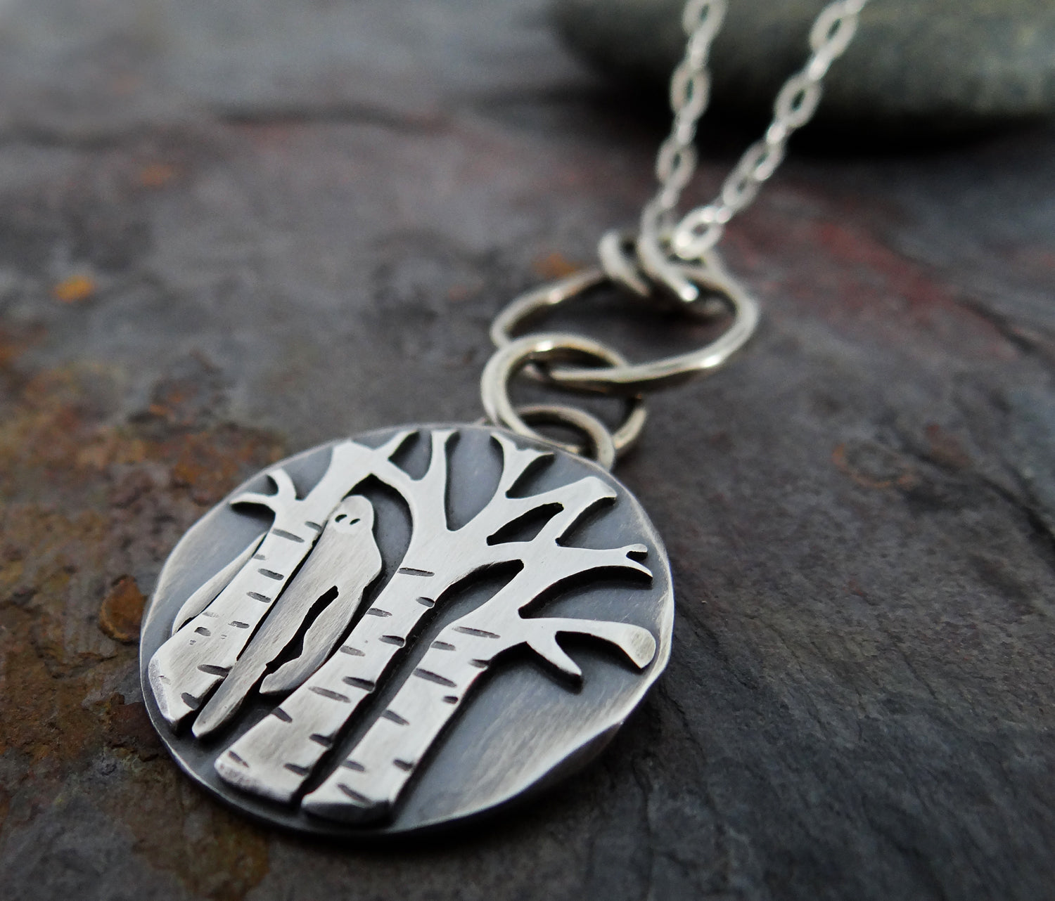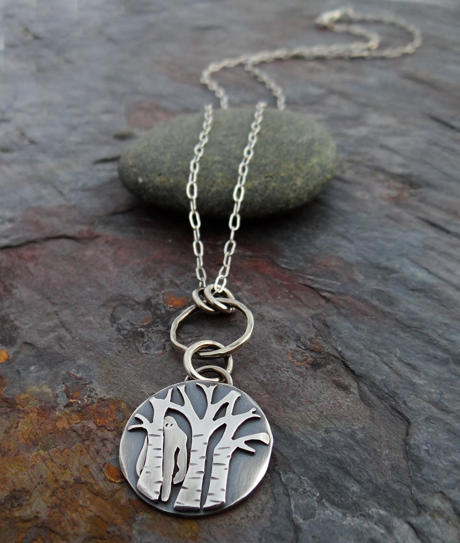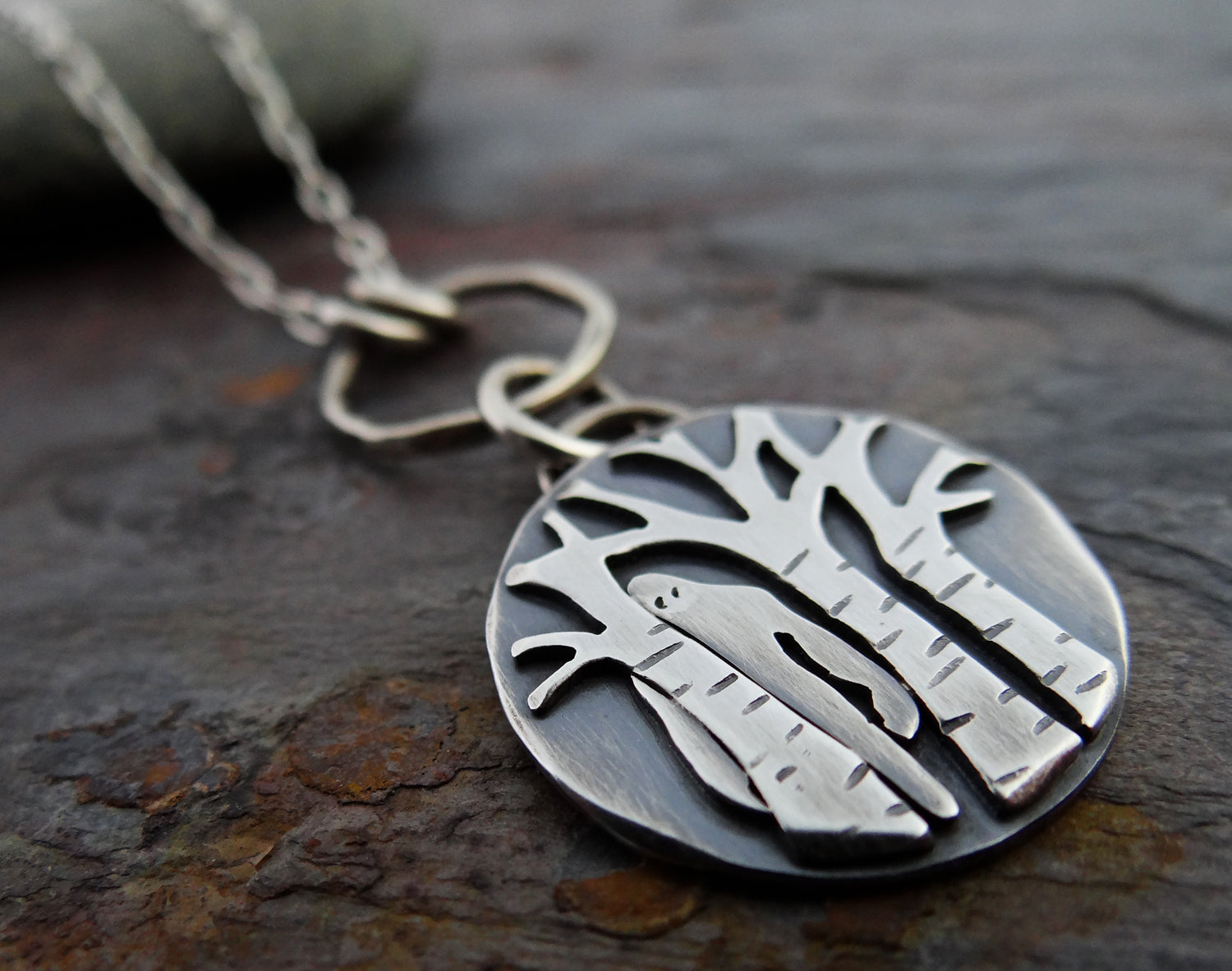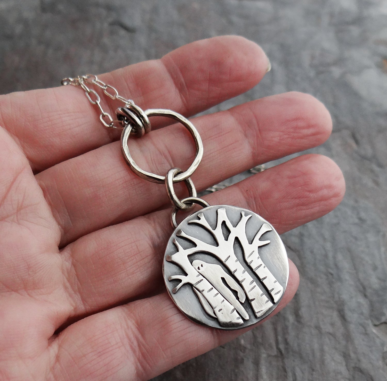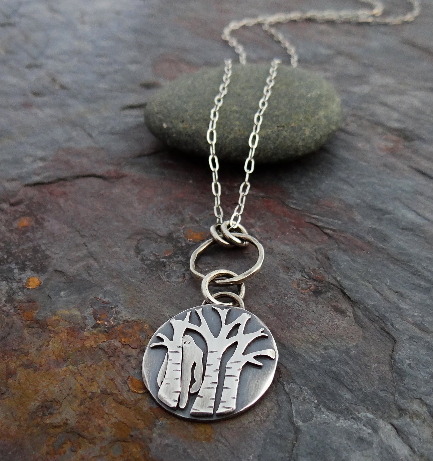 Forest Guardian || sasquatch peeking out from the trees || hand forged sterling silver bigfoot pendant (5204)