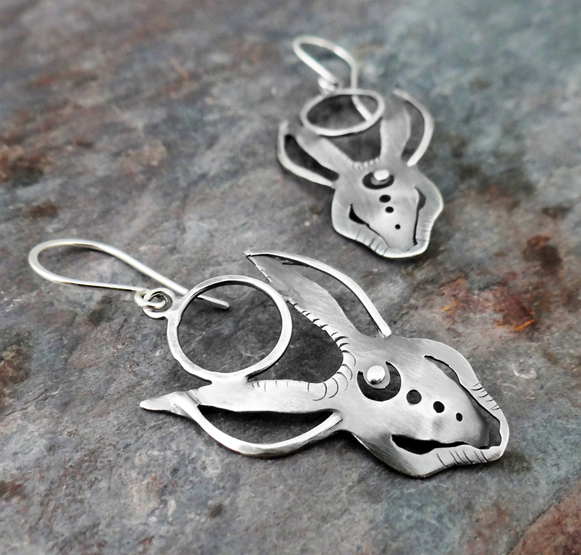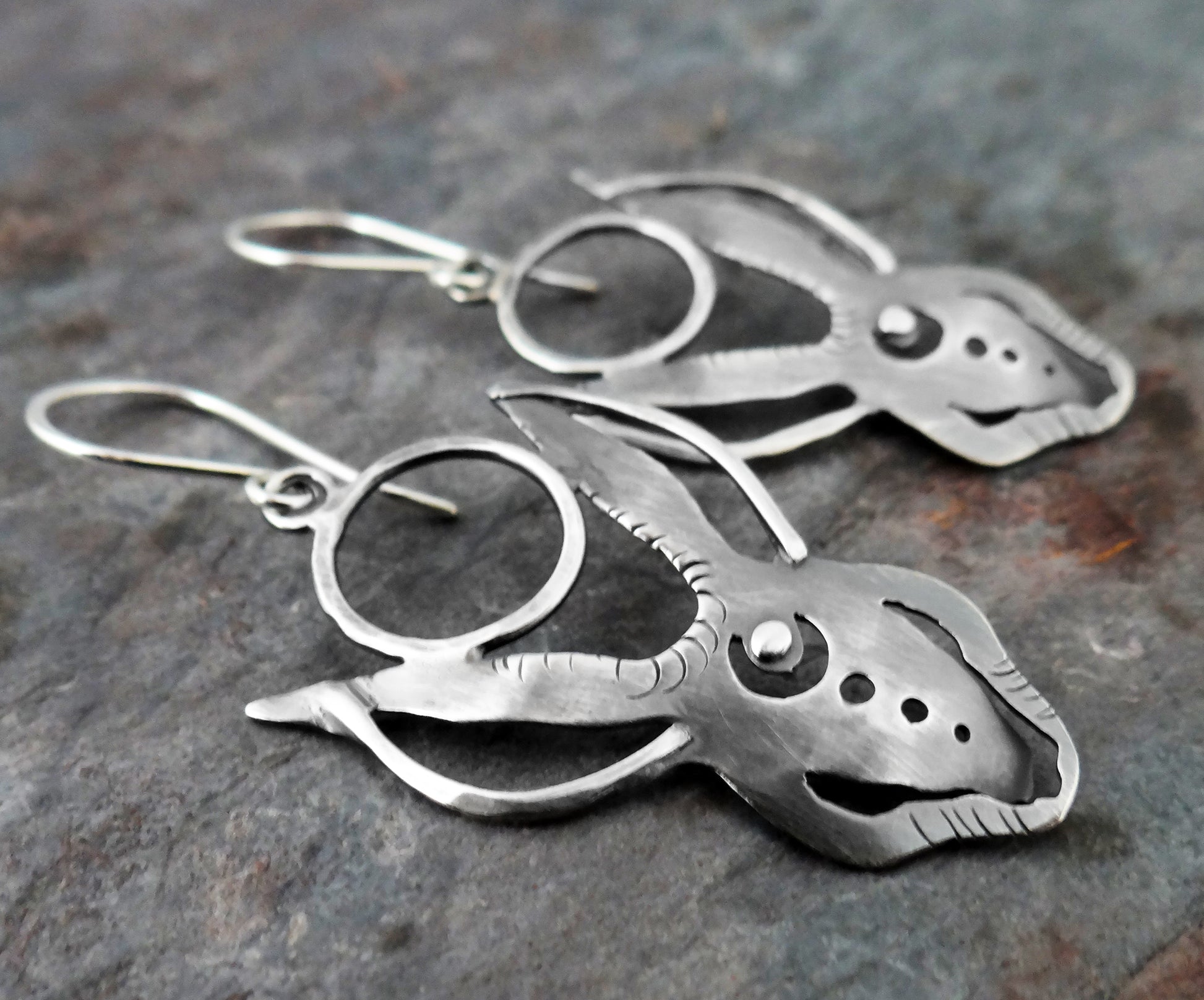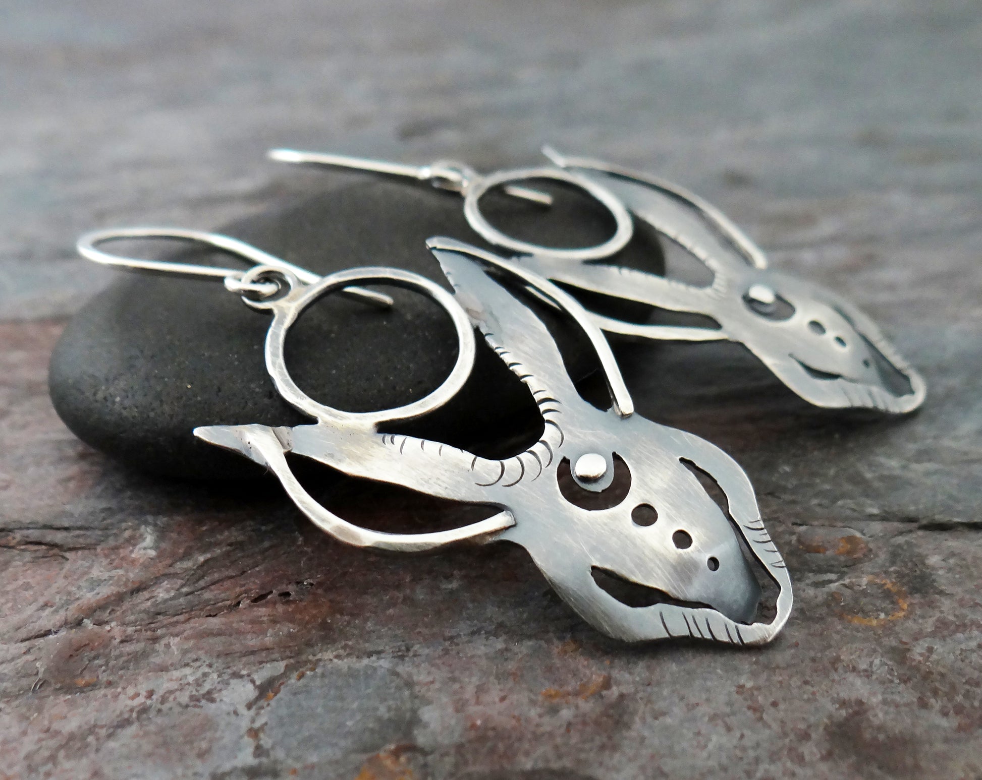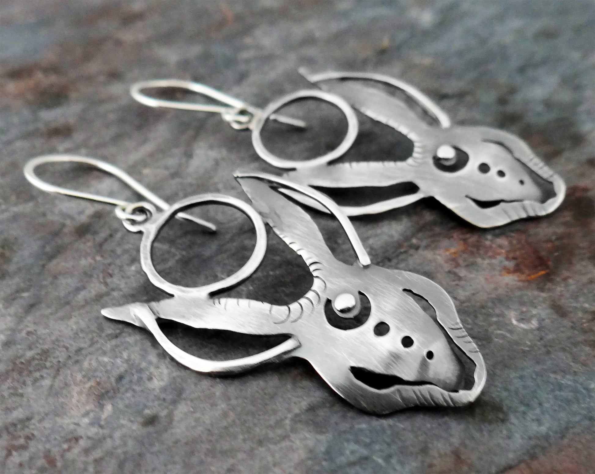 A rabbit hops in the moonlight. Completely hand-fabricated from solid sterling silver. Very lightweight and comfortable.